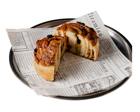 Biga mayalı 2 gün fermenteli bosco özel pişi üzeri 2 adet göz yumurta, yoğurtlu sos, baharatlı tereyağı ve taze yeşillik, 11:00 ile 13:00 saatleri arası sınırlı sayıda servis edilmektedir.
