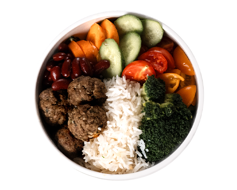 Zeytinyağı ile hazırlanmış basmati pilavı 160 gr, meksika fasulyesi, blanch edilmiş brokoli, havuç ve salatalık slice, maskolin, cherry domatesler.